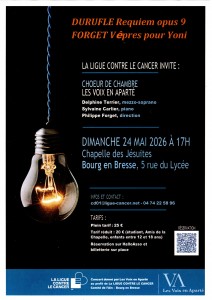 14 ter rue du Lycée – 01000 BOURG-EN-BRESSE Actualités et prochaines animations Les voix en aparté Dimanche 24 mai à 17h Un chœur de chambre au profit de la Ligue 25 € / Réduit 20 € Les voix en aparté Requiem de Duruflé & Vêpres de Forget Les voix en aparté Dimanche 24 mai à 17h Un chœur de chambre au profit de la Ligue 25 € / Réduit 20 € [/content_band] Les voix en aparté Dimanche 24 mai à 17h Un chœur de chambre au profit de la Ligue 25 € / Réduit 20 € Les voix en aparté Requiem de Duruflé & Vêpres de Forget Les voix en aparté Dimanche 24 mai à 17h Un chœur de chambre au profit de la Ligue 25 € / Réduit 20 € WebChapelle14Animations12.16.2014